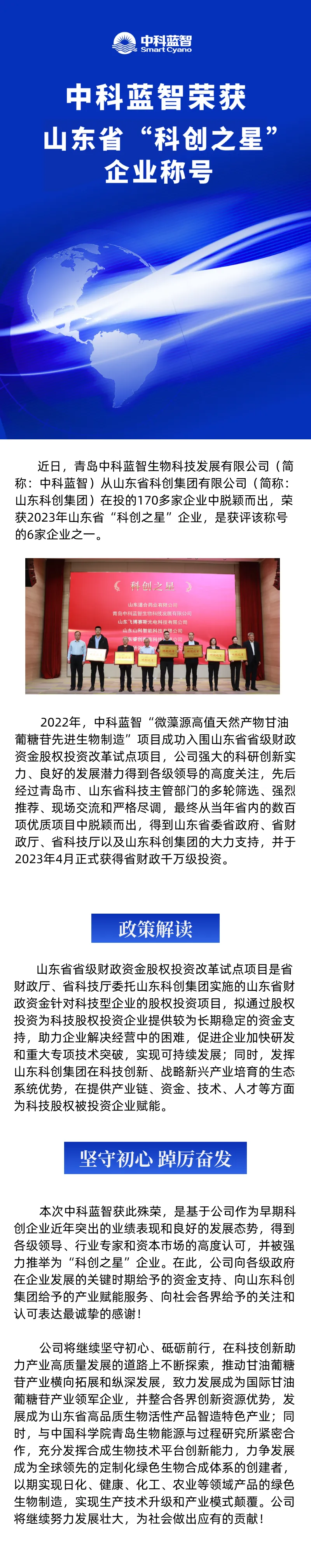 乐通Family | 中科蓝智荣获2023年山东省“科创之星”企业称号